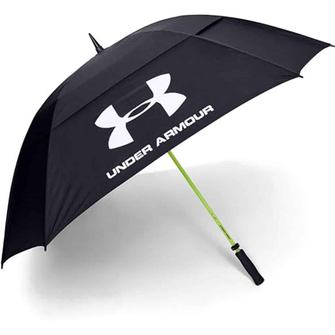 The Under Armour Double Canopy golf umbrella is an excellent option to consider this winter. It has the two essential features a good golf umbrella needs, which is durability and and a large canopy to protect you from the elements.