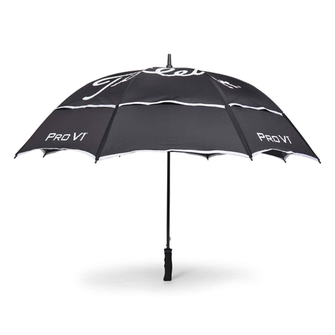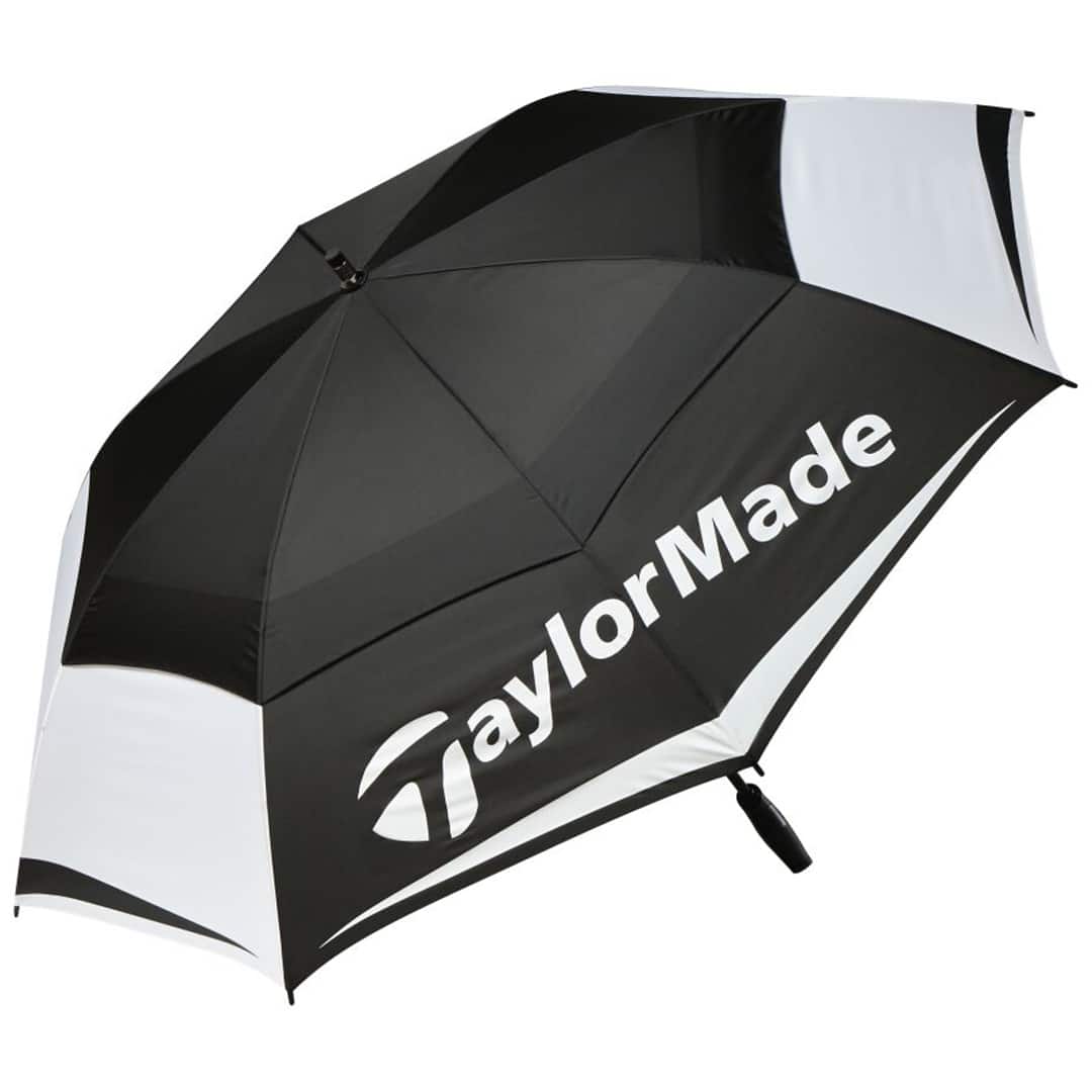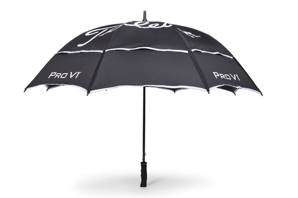 Having had flimsy umbrellas get mangled by the wind on several occasions a quality umbrella is required equipment and this TaylorMade double canopy umbrella certainly ticks the quality box.
