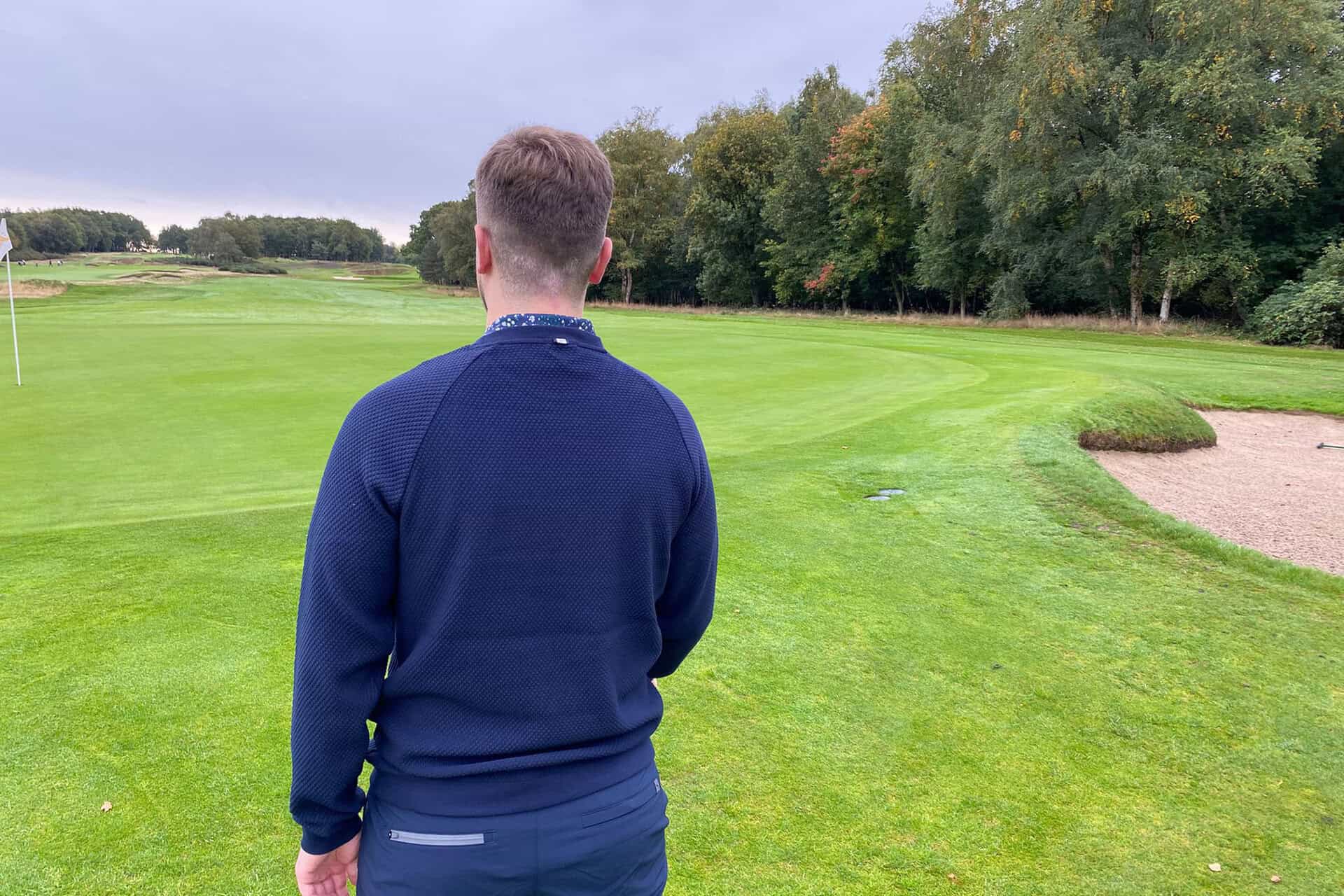 The Rumsey is designed with extra fine Merino wool blend and ribbed T-neck collar, cuffs and hem to provide extra comfort and protection from the wind. The lining of the garment is also built with a stretch material to enhance the movement potential when you’re playing. Initially I thought I may be restricted when swinging the club due to it being heavier, however this wasn’t the case at all.