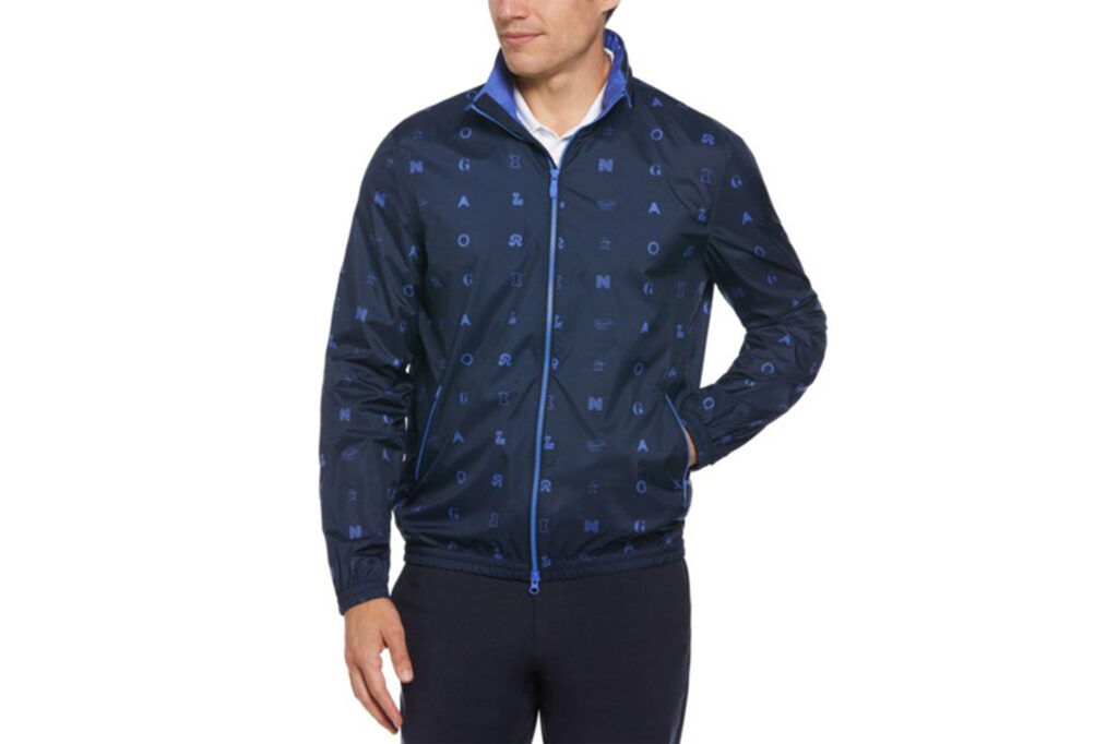 Logo Print Golf Wind Jacket With Hidden Hood In Black Iris – £75 now £45