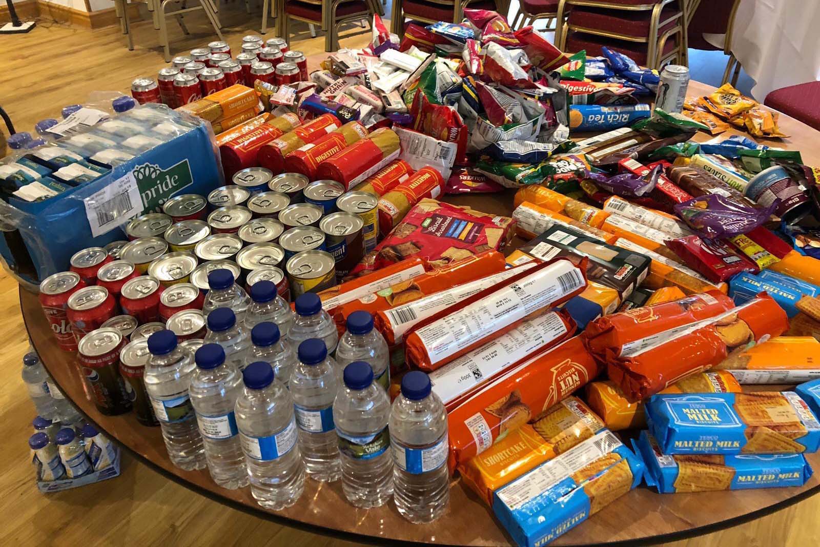 The scale of the donations was breathtaking – stacks upon stacks of packs of biscuits, bottles of water, cans of drink, toothbrushes, deodorant, chocolate bars, and more.