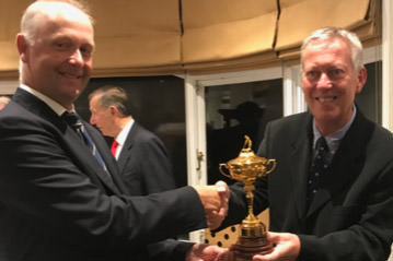 Former European Tour, and six-time Ryder Cup player Howard Clark attended the dinner, and fielded questions from the members, before presenting the Ryder Cup to Ganton professional, Gary Brown, who followed in Hogan’s footsteps by receiving the Cup as a winning USA team captain.