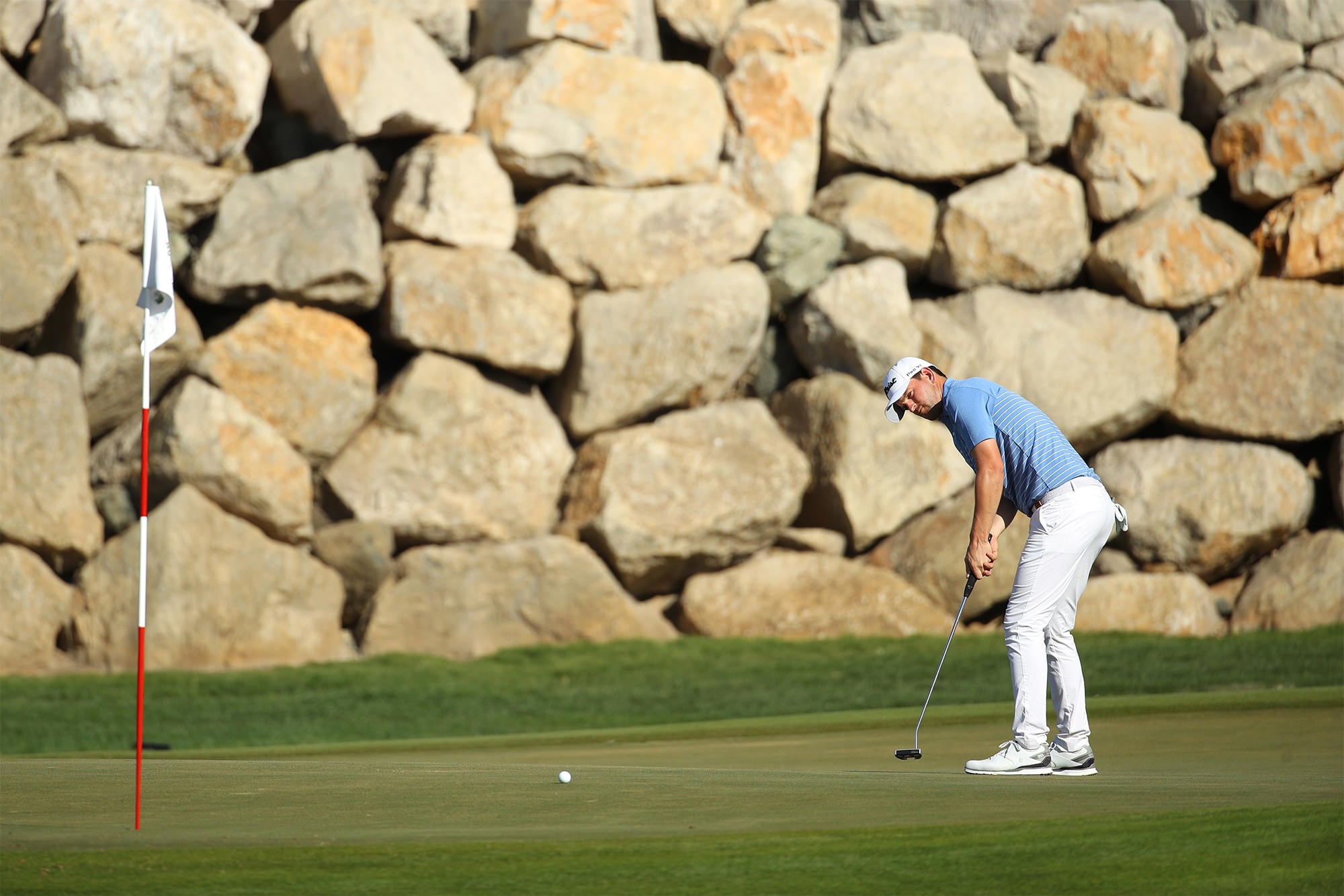 So let me get this right, you can’t use an alignment stick or, indeed, your caddie to line you up, but it is perfectly fine to use a putter as an alignment tool?