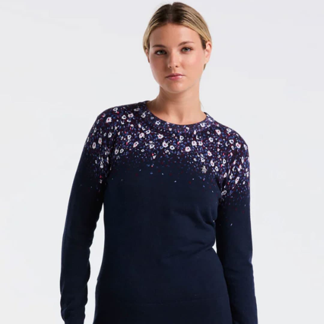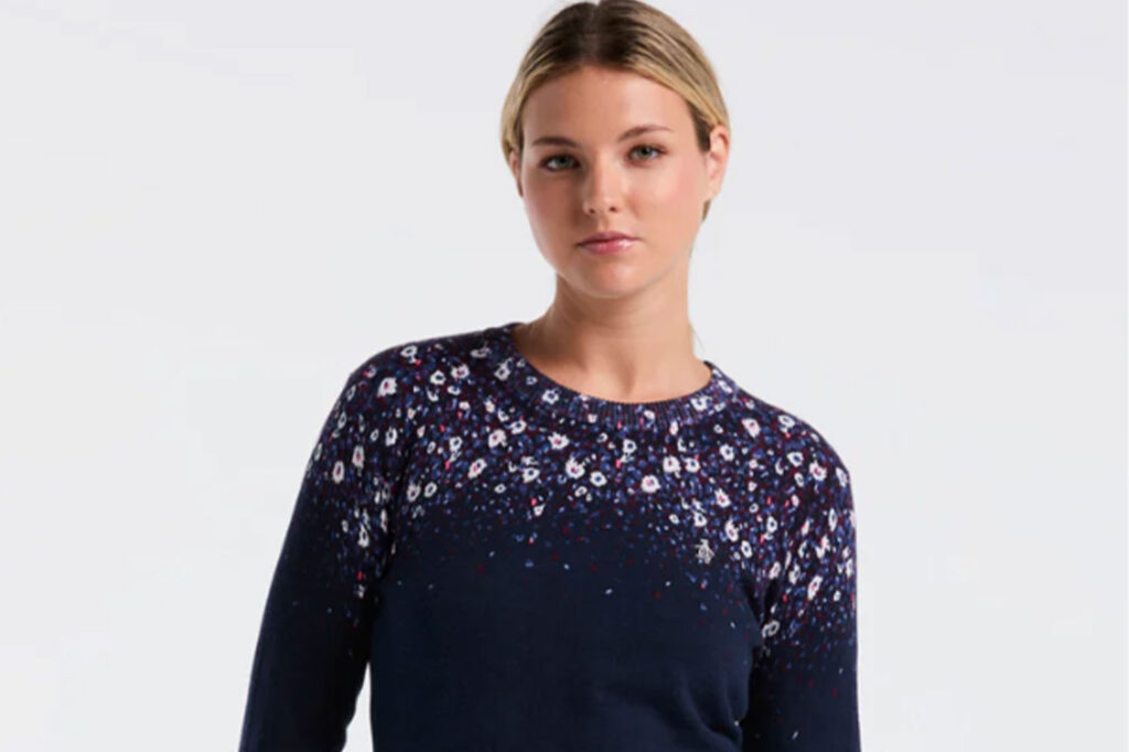 Featuring an eye-catching engineered floral print, this women’s sweater from Original Penguin will add a fresh touch to your cool-weather wardrobe.