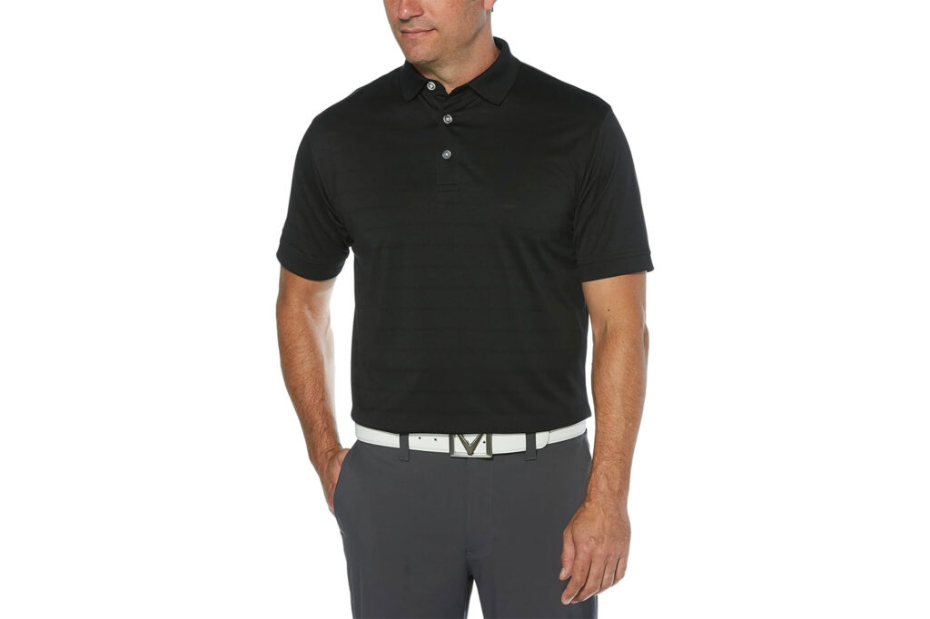 The Callaway men’s golf shirt features Opti-Dri moisture-wicking and ventilated fabric to keep you dry and cool throughout your game, even on hot days.