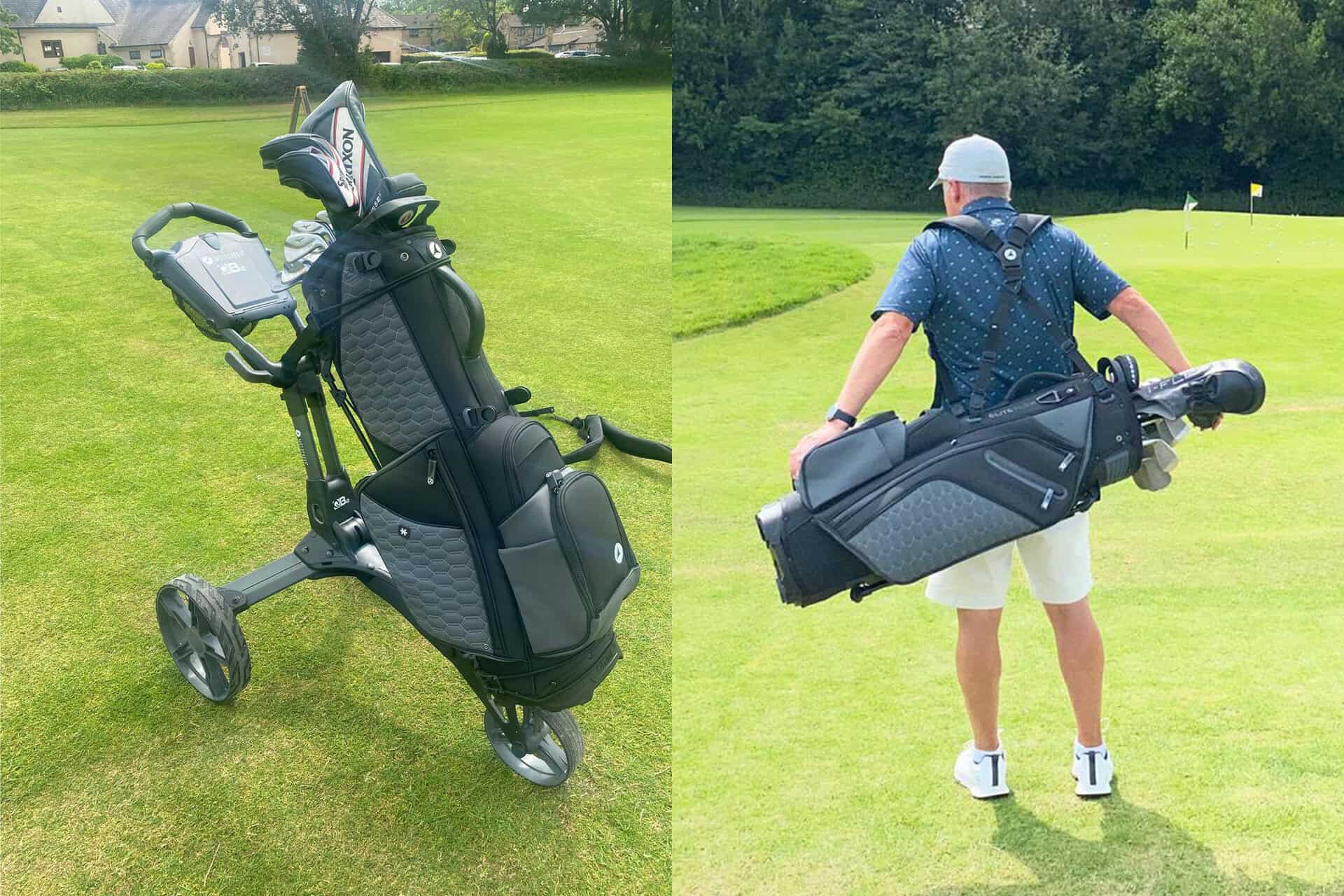 Jonathan Taylor brings you the low down on the Motocaddy EliteFLEX hybrid golf bag – a 2 in 1 bag that you can carry or put on a cart.