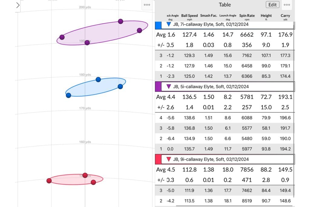 Let’s take a look at the data. First off, I was really happy with the feedback I was getting across the Callaway Elyte iron set. The 7-iron produced excellent ball speed for me and the spin rate was extremely pleasing.