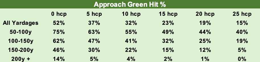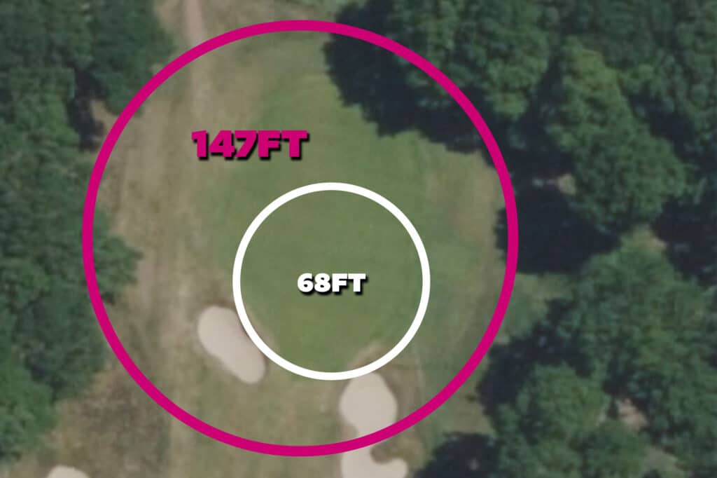 This is however very accurate compared to the 147 feet average for 15 handicappers which is much bigger than the size of the green. So next time you are taking your approach shot and trying to perfect it landing just over the bunker to a front pin it would be an idea to remember this image and play more conservatively.