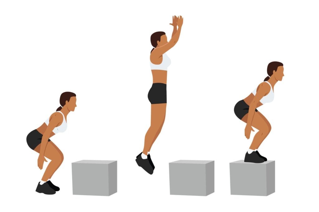 Box jumps are a great plyometric exercise for golfers, that helps build explosive power in the lower body. Choosing a suitable height box for the jump is an important starting point and then drop into a half squat position, driving the arms up as you jump onto the box.