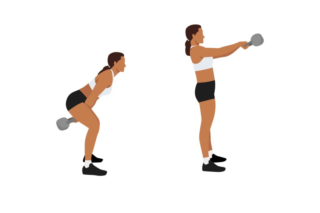 Kettlebell swings are great for golfers as they engage the core, hips and legs. Choosing a suitable weight kettlebell, with legs spread slightly wider than shoulder width, the kettlebell should be held with both hands in front of the body. Knees should be bend slightly with hips pushed back as the kettlebell is swung back through the legs and driven up in front of the body.