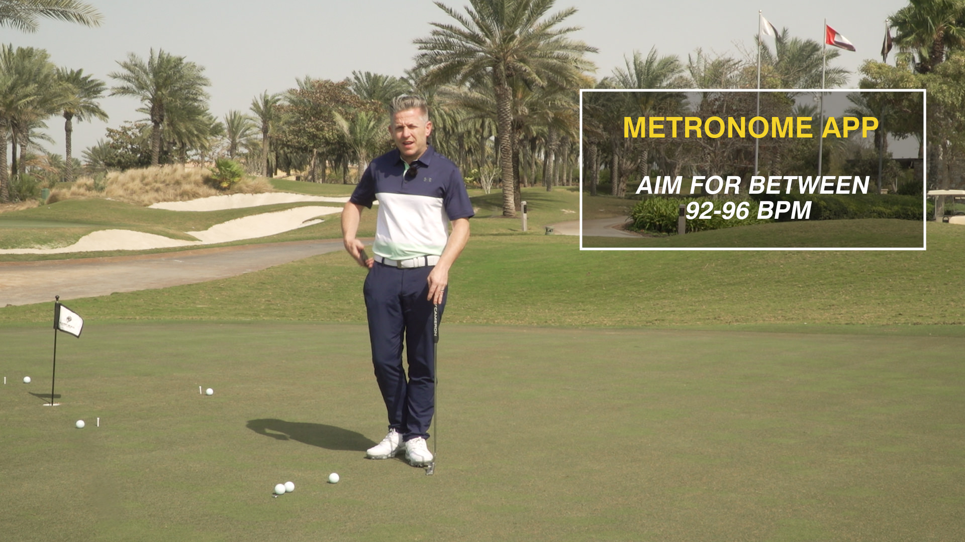 I would urge everyone who struggles with putting to download a free metronome app onto your mobile phone. This is ideal for practising because you can set it to what pace you want and that gives you a good base for bringing the club back and through within the two beats.