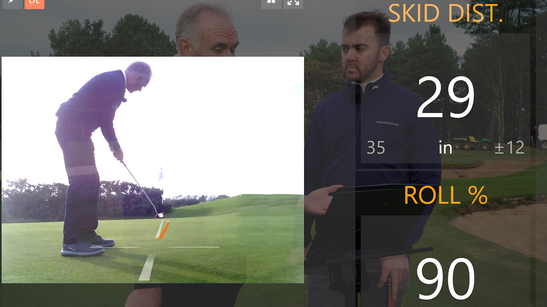 The first showing the on a 35 foot putt Gary’s ball skidded 55 inches, which is extremely high. The ball only rolled for 84% of the putt which meant that Gary was struggling to keep control of the ball.