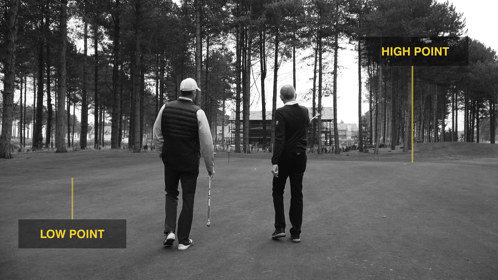 Once you’ve marked your ball have a quick look at the line to get a basic idea of which way the ball will break, but then heading to the low side you can really begin to see the changes in elevation. Looking at the low side opens up a completely different perspective, the key thing is to make sure your eyes are able to scan the whole length of the putt.