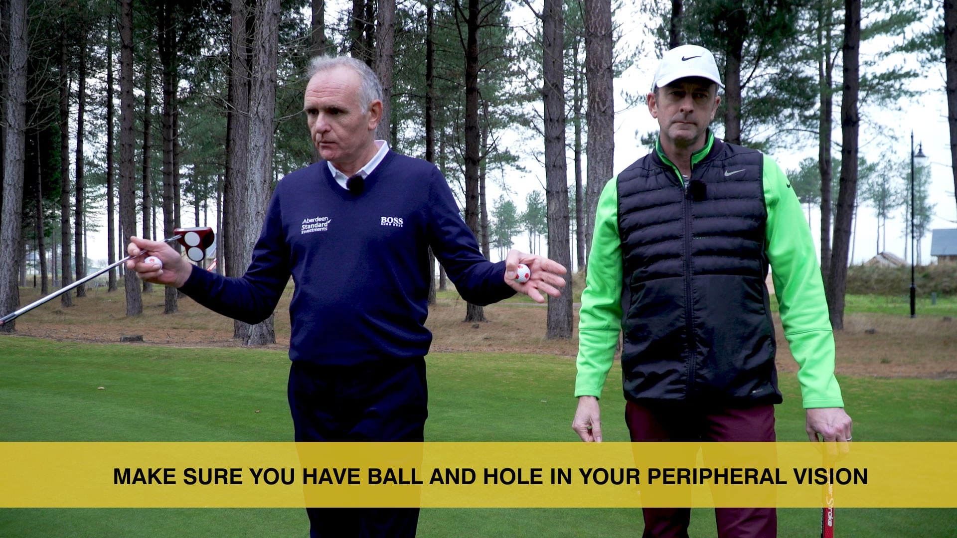 The key point is to make sure the ball and the hole is in your peripheral vision. If you keep having to move your head back and forward you won’t get a full sense of how long the putt actually is.