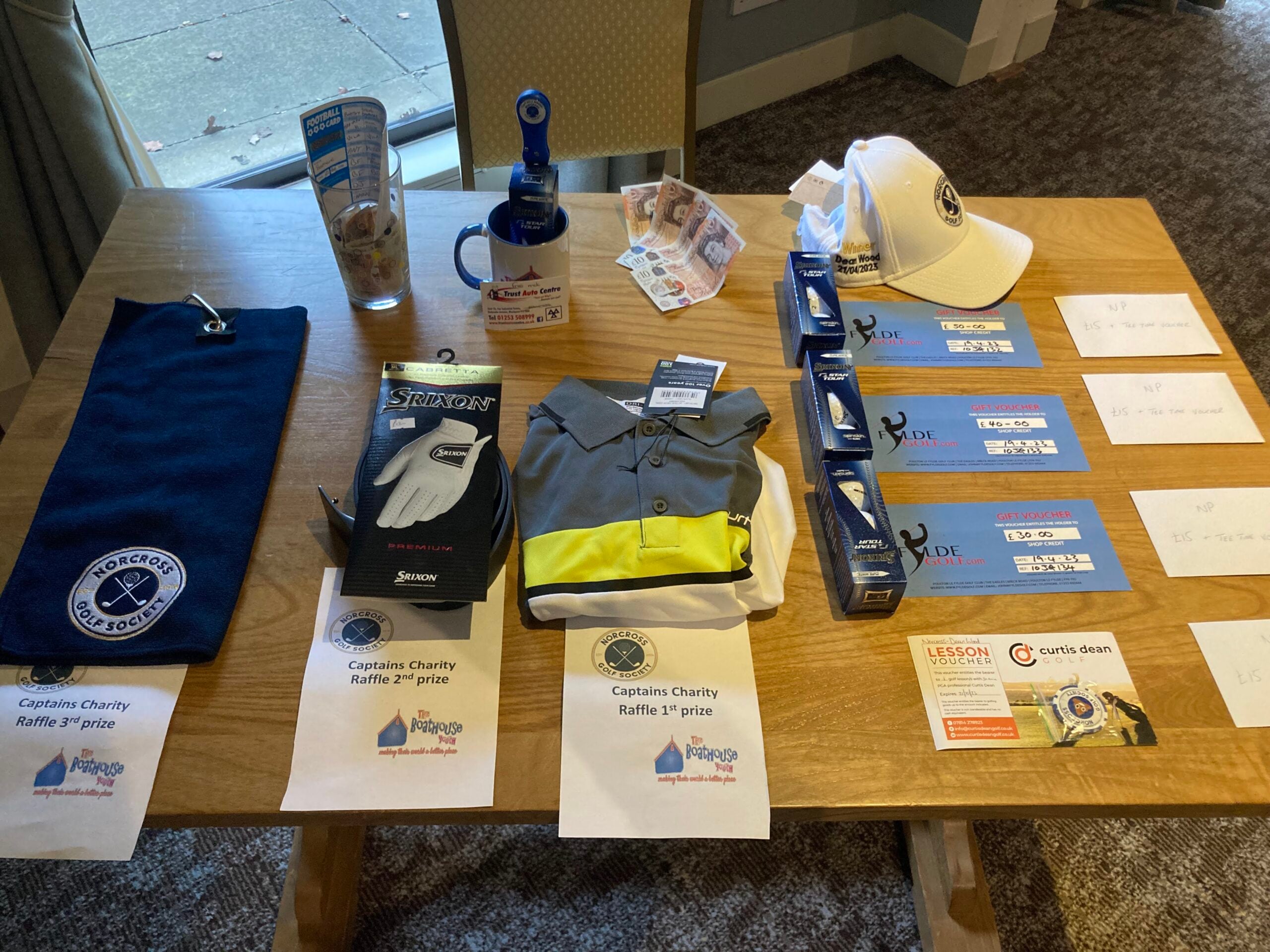 We provide prizes at each meeting for first, second and third place, four nearest pins, Captain’s hole (nearest pin in two), last place (a free golf lesson), a charity raffle with loads of prizes, and a bet club where members place a £1 bet on who they think will win the meeting.