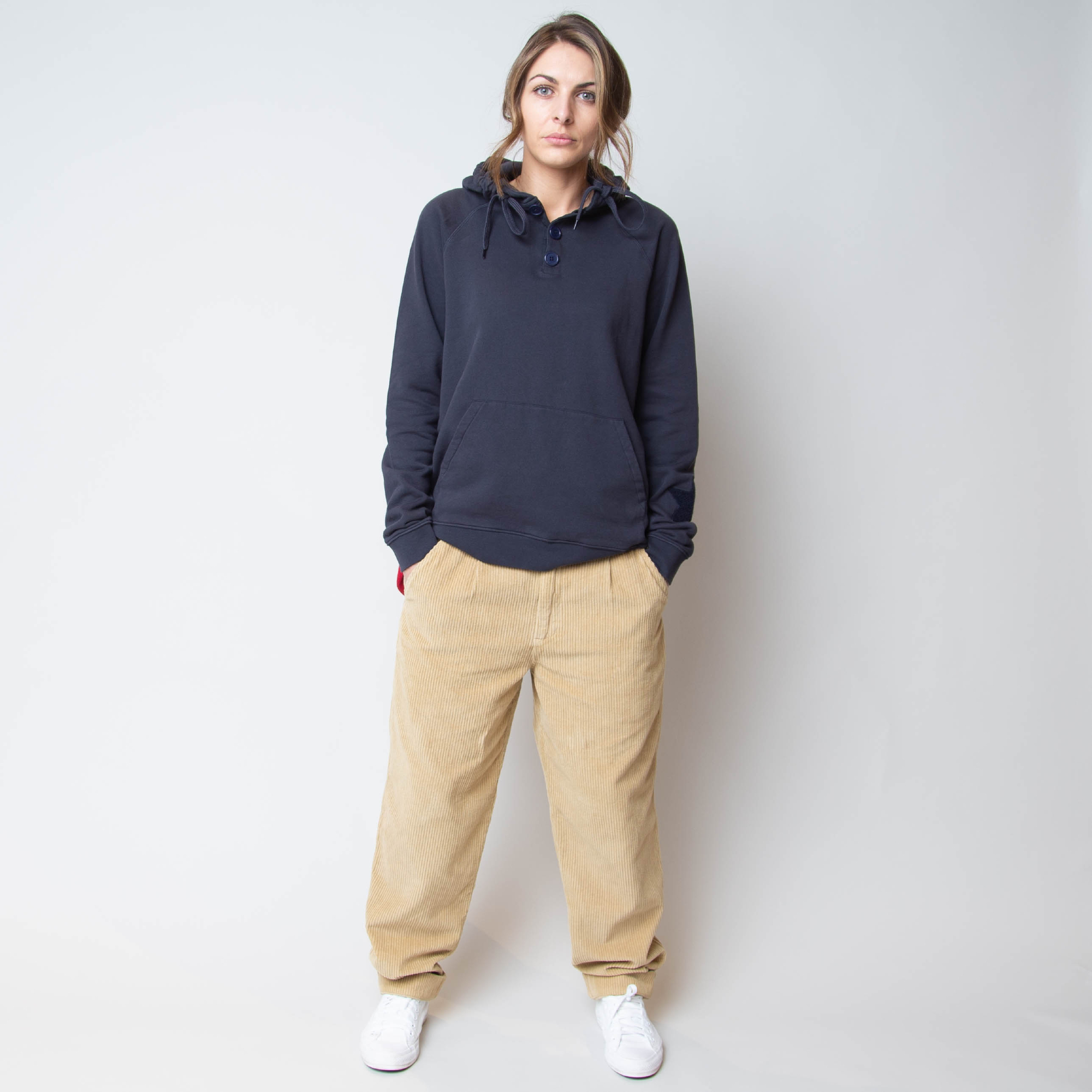 I have worn this under a jacket and like that the dark, but slightly pastel, blue goes with a variety of different coloured outerwear. You can never have enough hoodies and sweatshirts and this one ticks a lot of boxes.