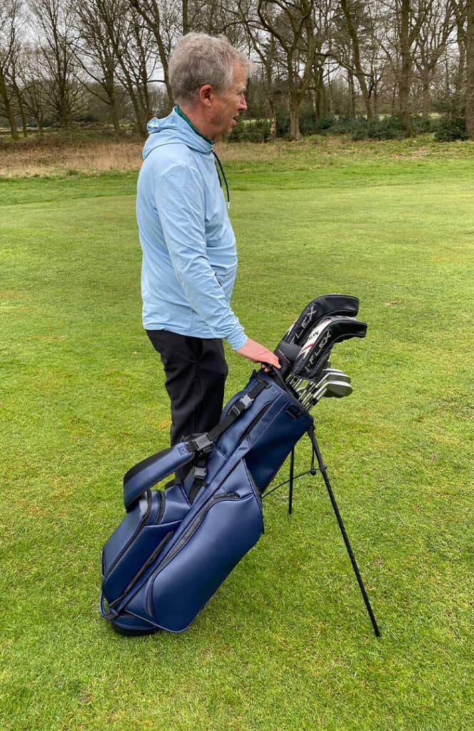 It’s easy to get in and out of the back of my car, courtesy of well-placed grab handles. It will take a full set of clubs…just. The pockets are mostly of a decent size, apart from the glove pocket, which I failed to see the use for.