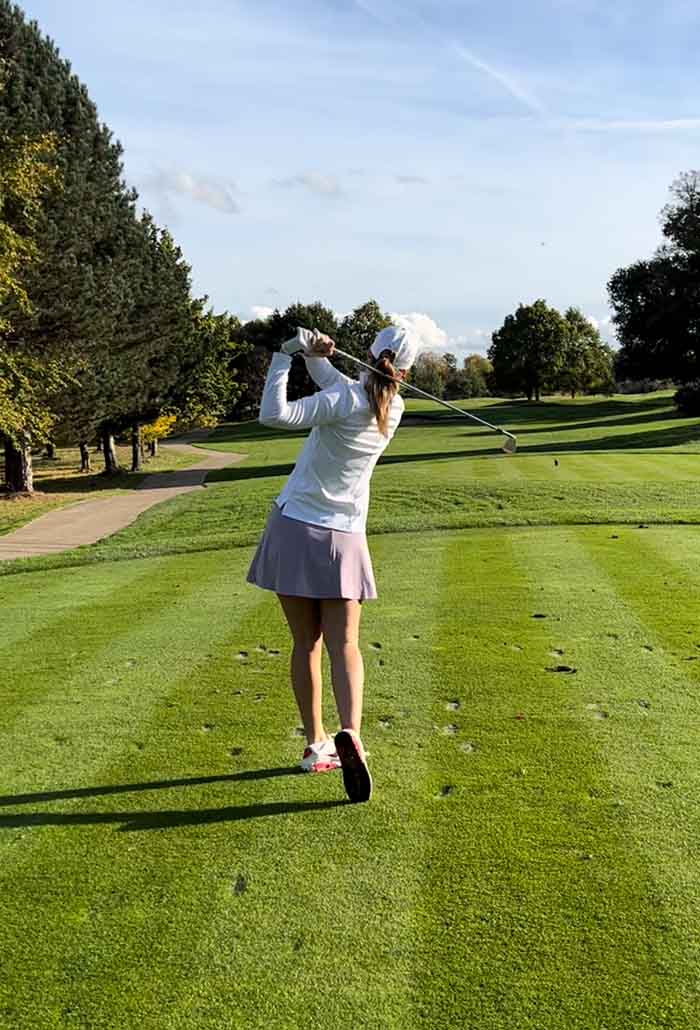I tested the blue and yellow colourway by hitting a number of different shots, focussing on approach shots into the greens and short game shots to see how the divide pattern looked in the air.