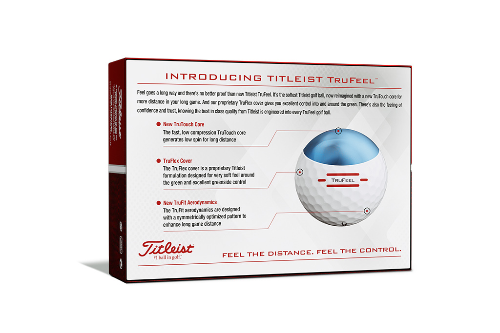 The TruFeel features something Titleist call TruTouch and TruFit, which basically means a low-compression core and aerodynamics that add up to more distance. A TruFlex cover, they say, provides ultra-soft feel for maximum control on shots into and around the green.