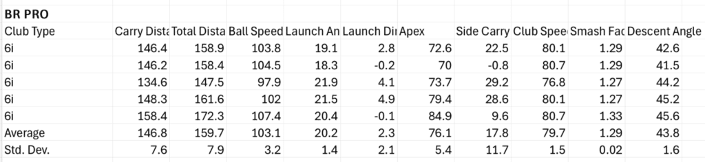 I collected the data at Scarcroft Golf Club using the Rapsodo MLM 2 pro launch monitor, some TaylorMade TP5 golf balls and the Benross BR-PRO pitching wedge, eight iron, six iron, and 4 iron.