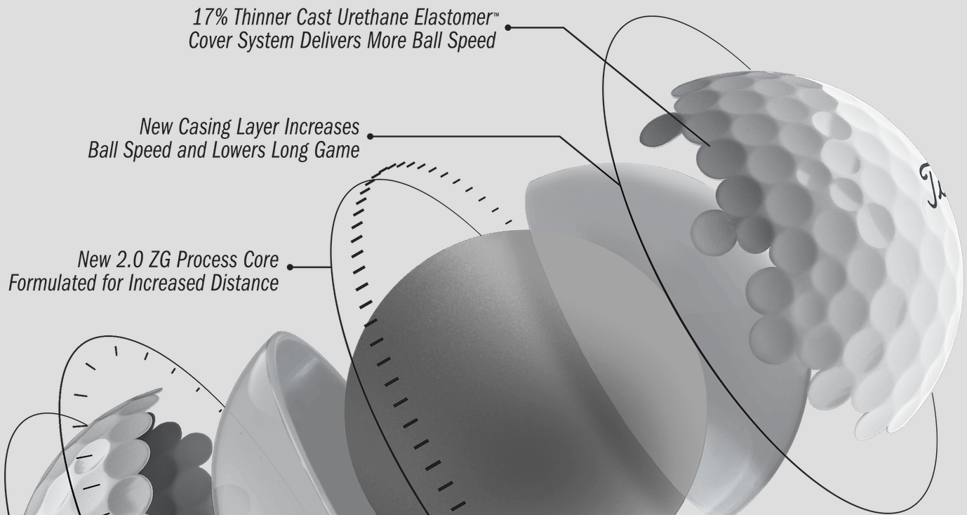 “Through the prototyping process, our chemists and engineers discovered a way to cast an even thinner urethane cover, and therefore increase the percentage of speed-enhancing materials in the overall construction,” said Titleist’s Michael Mahoney.