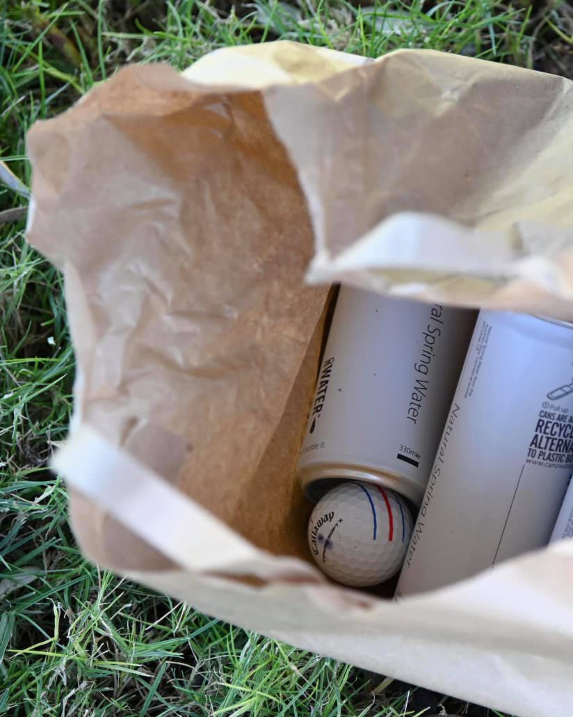 Only this time, it didn’t find the lush confines of fairway. No, it landed in someone’s discarded lunch bag.