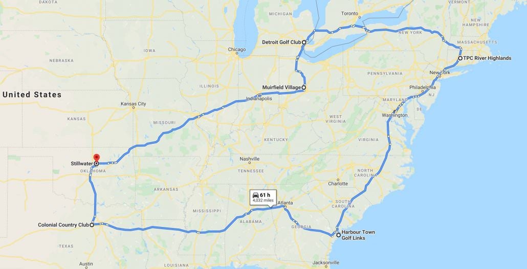 After that he will take the 198-mile, three-hour journey to Muirfield Village for both the Workday Charity Open and Memorial, before the 882-mile, 14-hour drive home.