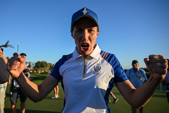 Ciganda made an impressive kick-in birdie against Nelly Korda on the 17th hole to take Suzann Pettersen’s side to 14 points when the team scores read 13 apiece.