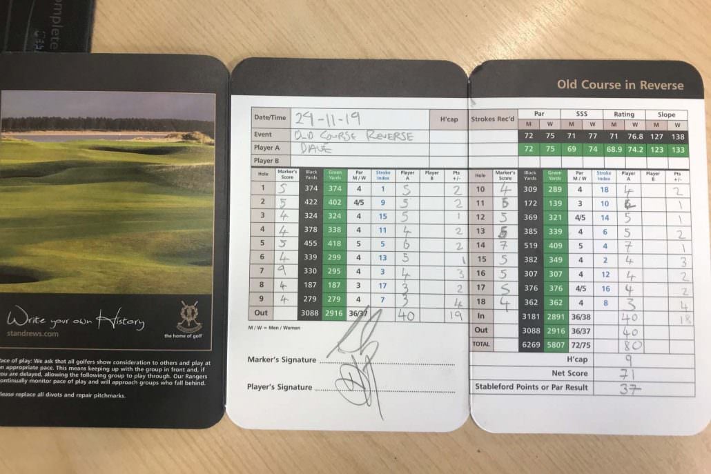 Hall scored a gross 80, or 37 Stableford points, and capped a memorable Old Course day with a birdie at the last – played from the 2nd tee to the 18th green.